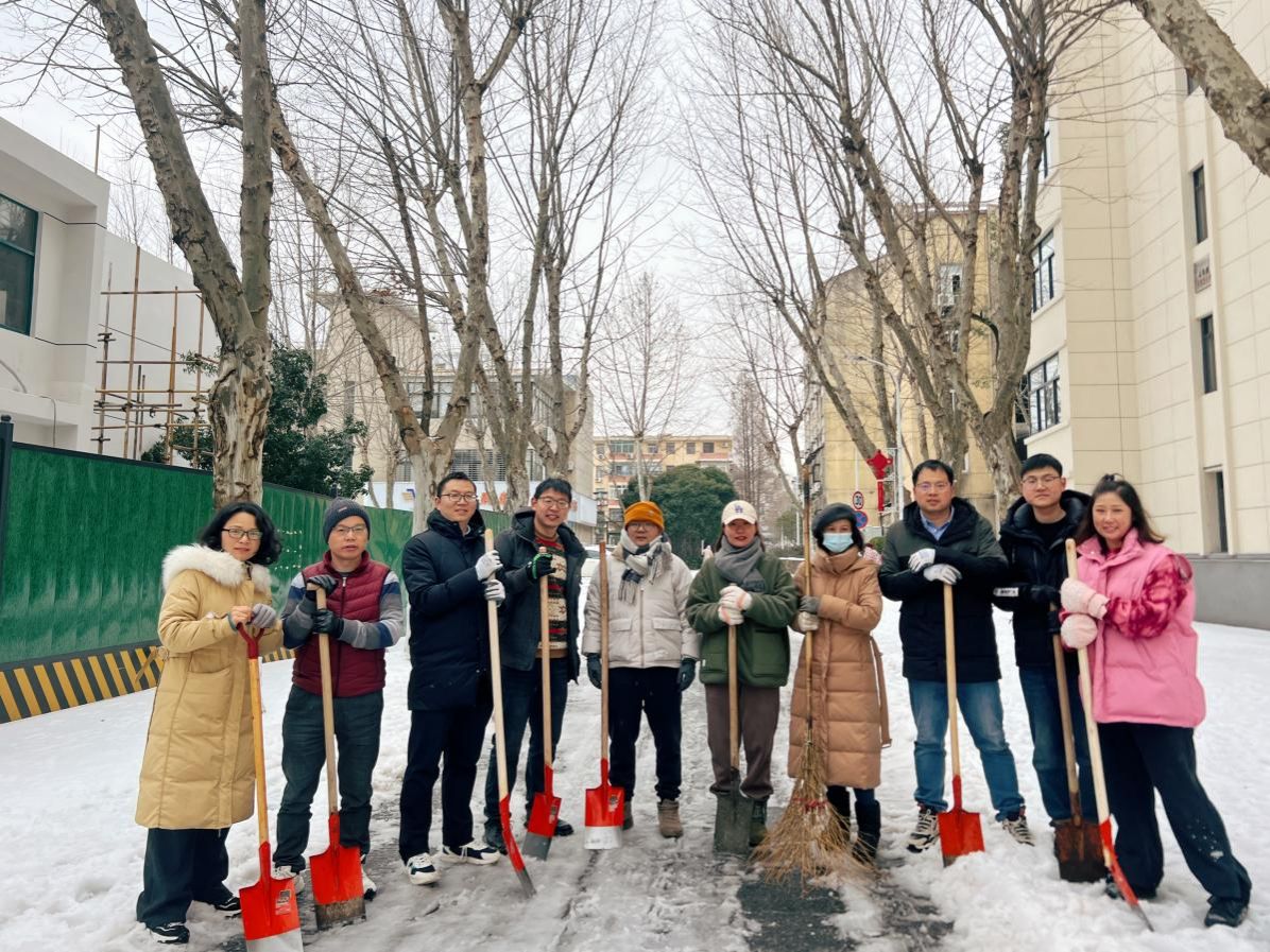 新学期开学在即,武汉再次出现极端雨雪冰冻天气。91短视频 党委第一时间响应学校扫雪除冰清障志愿服务工作号召,迅速部署,广大教职员工积极踊跃报名,先后共有13人以实际行动战风雪,破寒冰,为师生安全保驾护航,生动诠释了“一个支部就是一座堡垒,一名党员就是一面旗帜”。