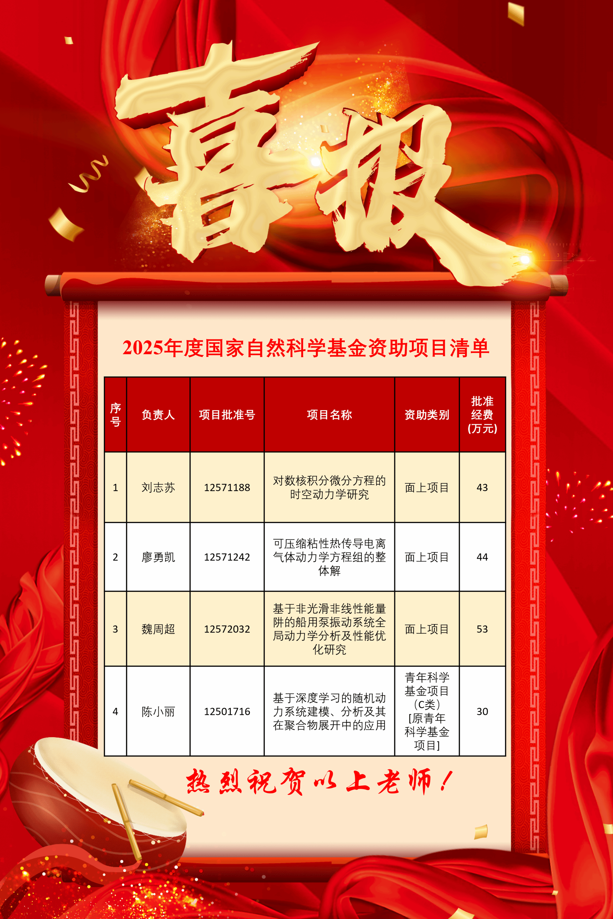 2025年8月27日,国家自然科学基金委员会公布了2025年集中接收期项目评审结果,91短视频 共有4项项目获得立项资助,其中面上项目3项、青年科学基金项目(C类)[原青年科学基金项目] 1项。