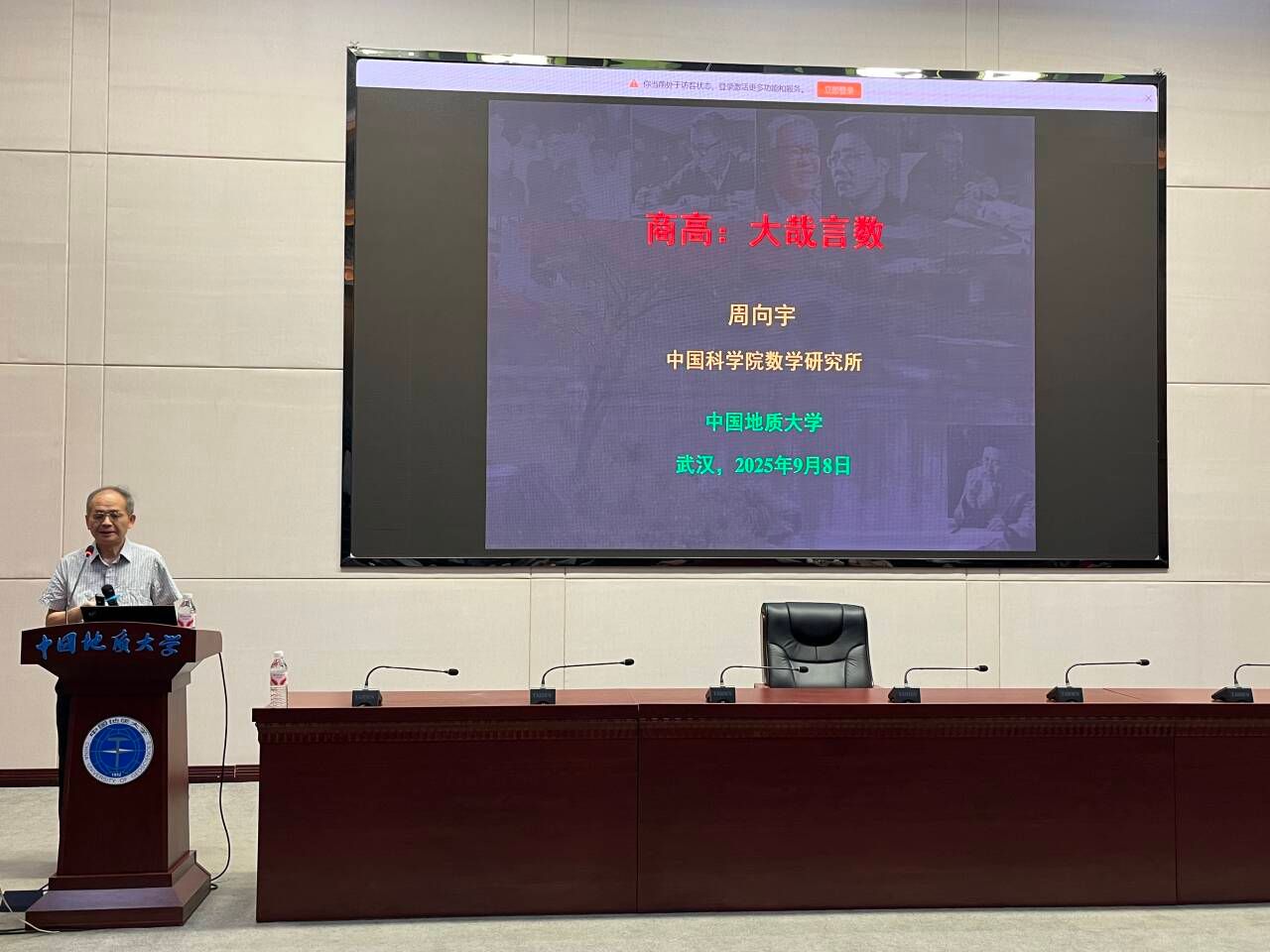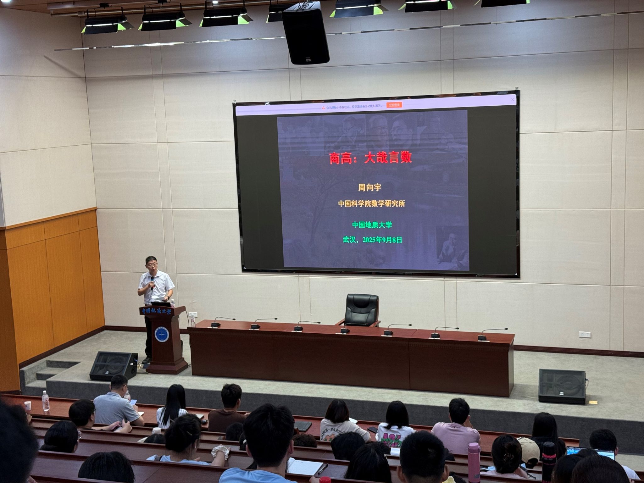 2025年9月8日,应91短视频 院长魏周超教授的邀请,中国科学院院士、发展中国家科学院院士、中国科学院数学与系统科学研究院周向宇研究员做客中国地质大学(武汉)“名家论坛”,在南望山校区东区教学综合楼A0116会议室为91短视频 师生带来了一场题为“商高——大哉言数”的精彩学术报告。本次报告会由91短视频 魏周超教授主持。2025级研究生、本科生百余人参加此次报告。