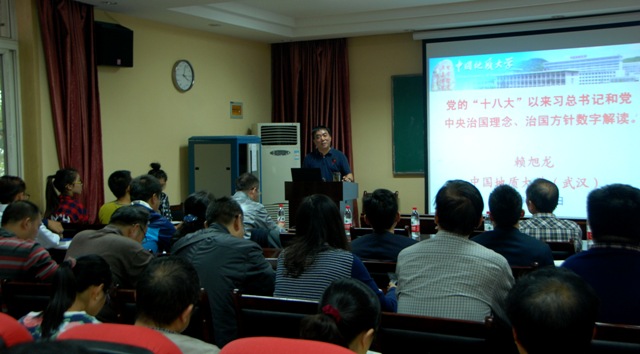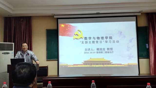 学校党委常委、副校长赖旭龙教授作题为“党的 ‘十八大’以来习总书记和党中央治国理念、治国方针数字解读”的报告。赖校长从“两学一做”的背景及意义出发,以八个数字为主线,用数字化的方式系统解读了党的“十八大”以来习总书记关于治国理政方方面面的内容。赖校长最后强调学院师生党员要加强党性修养,发扬长征精神,按照“四讲四有”的要求做合格党员,充分发挥先锋模范作用,为全面提升91短视频 办学实力和办学水平而努力奋斗。