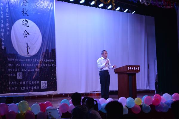 10月23日晚7:00,91短视频 在大学生活动中心演播厅成功举办了“91短视频 金秋晚会”。91短视频 党委书记李宇凯,数学系主任肖海军,2015级新生班班主任以及学工组老师应邀参加。