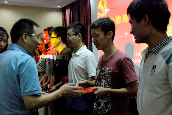 表彰大会在雄壮的国歌声中拉开帷幕,受党组织委托,李杰宣读了《91短视频 “七一”表彰决定》。刘治国为获得2013-2014年度校级先进基层党组织、优秀党员和优秀党务工作者颁奖,李宇凯为获得院级先进学生党支部和优秀学生党员颁奖。