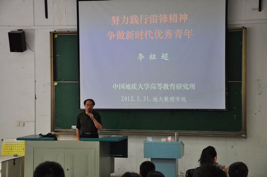 学生党员作了题为“努力践行雷锋精神,争做新时代优秀青年”的主题报告。他从雷锋精神的时代内涵、学习雷锋精神的现代意义、争当优秀青年等方面深入浅出地为大家做了深刻的阐述。首先,李所长从胡锦涛主席在纪念建团90周年大会上对青年提出的五点要求入手,论述了学习雷锋精神与胡主席所提出的“五个坚持”在要求上的一致性和精神上的相通性。他说,学雷锋是与时俱进的,大学生学雷锋尤其体现在树立崇高理想、坚定信念、刻苦学习、多做贡献四个方面,并倡导在座学生党员将学雷锋与践行社会主义核心价值体系相结合,学习身边的典型,不断发挥先锋模范作用,