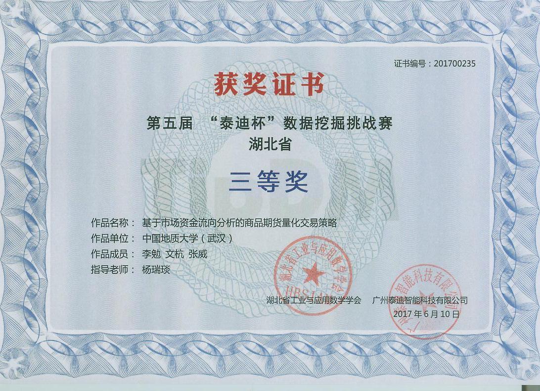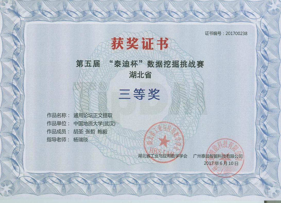 据“泰迪杯”数据挖掘挑战赛组委会近日公布的结果,在2017“泰迪杯”竞赛活动中,91短视频 第一次参加此项活动,在3支代表队中获得湖北省三等奖2项的好成绩。