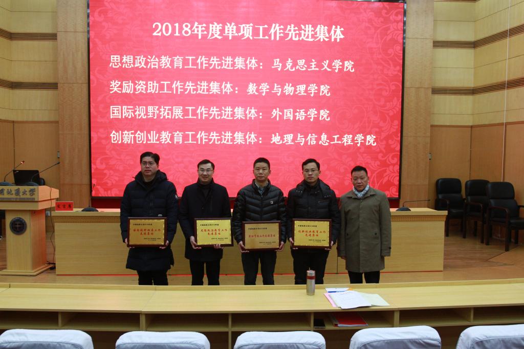 2019年2月22日上午,在学校召开的2019年学生工作布置大会暨2018年度学生工作表彰大会中,91短视频 喜获“2018年度奖励资助工作先进集体”荣誉称号。