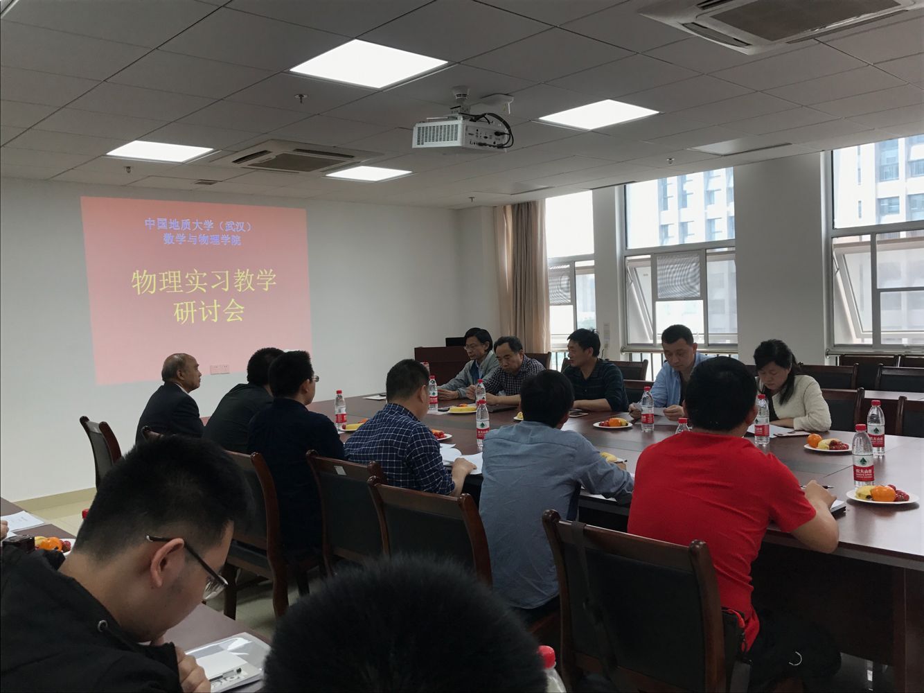 为推动物理学实习教学改革以适应国内国际物理学发展趋势,更加有效高质的培养物理学人才,91短视频 于2019年5月9日下午召开了一次物理实习教学研讨会,出席这次会议的有中科院武汉物理与数学研究所原子分子光物理研究部主任江开军研究员和所研究生处副处长蔡怡春,武汉麦思威科技有限公司总经理蔡昭,91短视频 党委书记吴太山教授和院长刘安平教授,物理系相关老师,以及去年参加实习的学生代表。物理系主任陈刚教授主持此次研讨会。