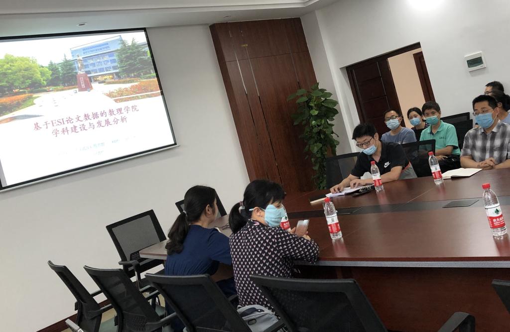 何清吟老师收集了91短视频 SCI论文数量、论文被引频次、高被引论文、热点论文等相关数据、统计了数学与物理学两个学科的科研论文成果,并从多个角度对91短视频 数学与物理学两个学科的科研水平、学术影响力等指标进行了全面衡量,分析了实现ESI突破的潜力与差距。91短视频 2010年至今共发表SCI论文704篇,被引频次总计4319次,共有10篇高被引论文,其中7篇属于数学学科,3篇属于工程学。刘建辉主任建议91短视频 教师要继续关注研究前沿,把握研究热点,合理设置奖励机制,加大高层次人才人员引进力度,挖掘中青年人才科研潜力,采取激励措施支持高水平论文的发表。