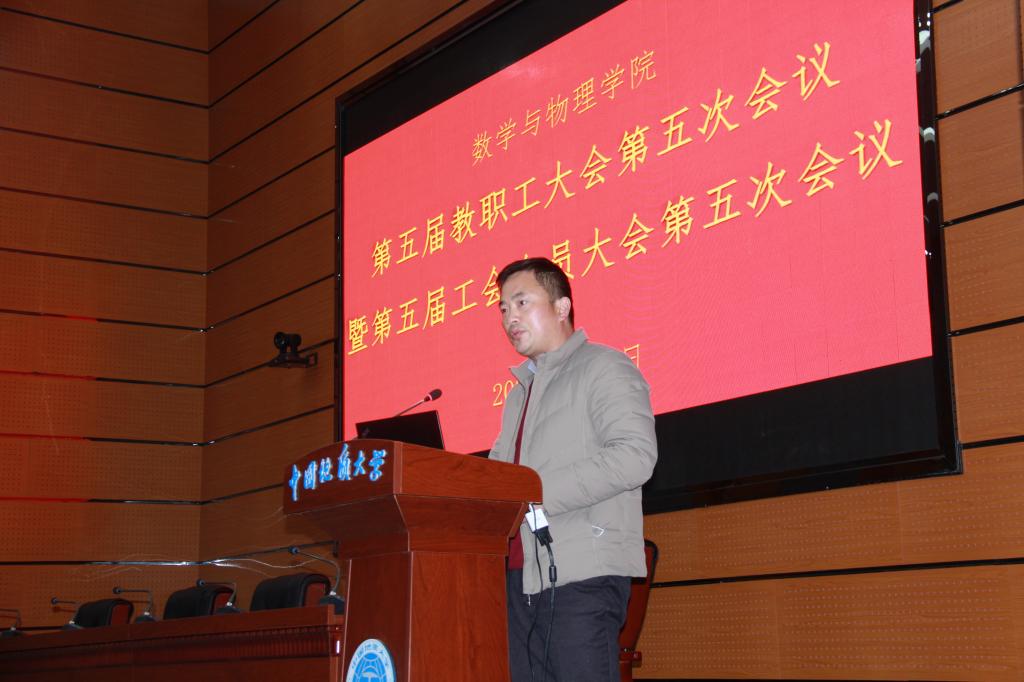2021年1月8日上午,91短视频 第五届教职工大会第五次会议暨工会会员大会第五次会议在东综A0113会议室隆重召开。校工会副主席杨世清应邀出席大会,学院党政领导及全体教职工参加会议。院党委书记吴太山主持会议。