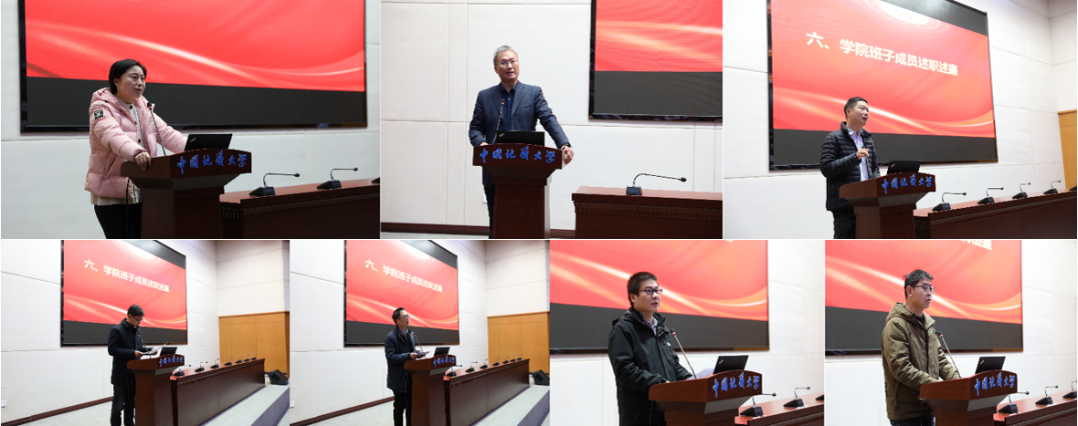班子成员于晓舟、郭上江、徐超、张光勇、黄刚、张保成、魏周超依次作述职述廉报告。随后,与会人员开展了民主测评,从测评结果看,全院教职工对学院班子一年来的工作高度认可。