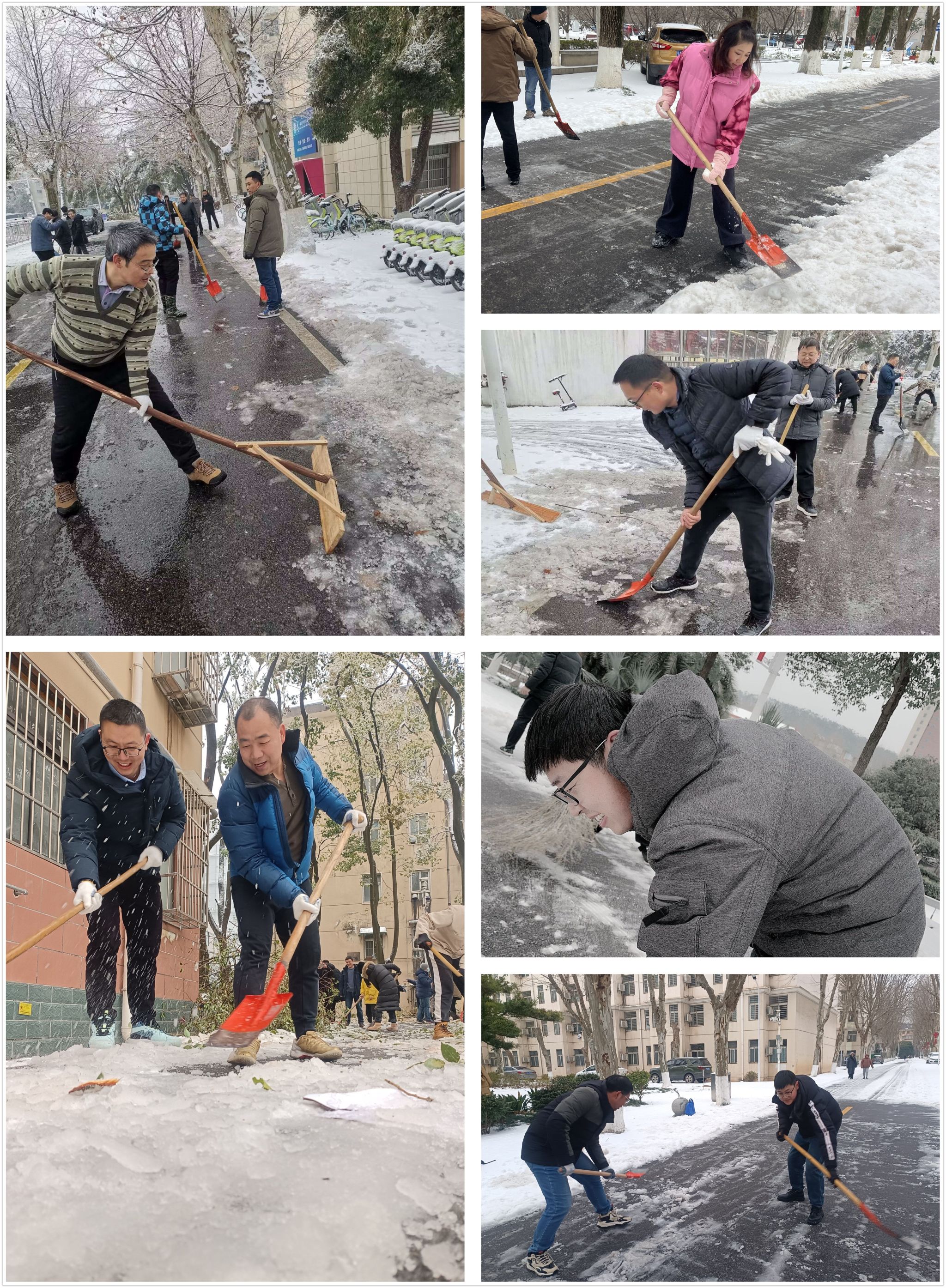 新学期开学在即,武汉再次出现极端雨雪冰冻天气。91短视频 党委第一时间响应学校扫雪除冰清障志愿服务工作号召,迅速部署,广大教职员工积极踊跃报名,先后共有13人以实际行动战风雪,破寒冰,为师生安全保驾护航,生动诠释了“一个支部就是一座堡垒,一名党员就是一面旗帜”。