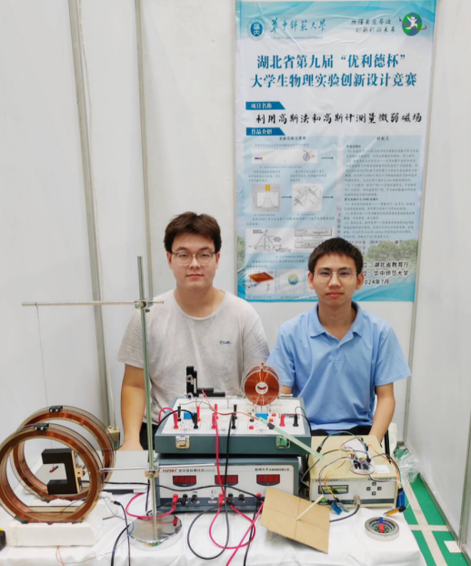 | 二等奖 | 微弱磁场测量 | 吴妍,熊中龙 | 彭宇豪,黄思涵,张烜瑞,贾天泽,张佳鸣 | 物理学,环境科学与工程 |