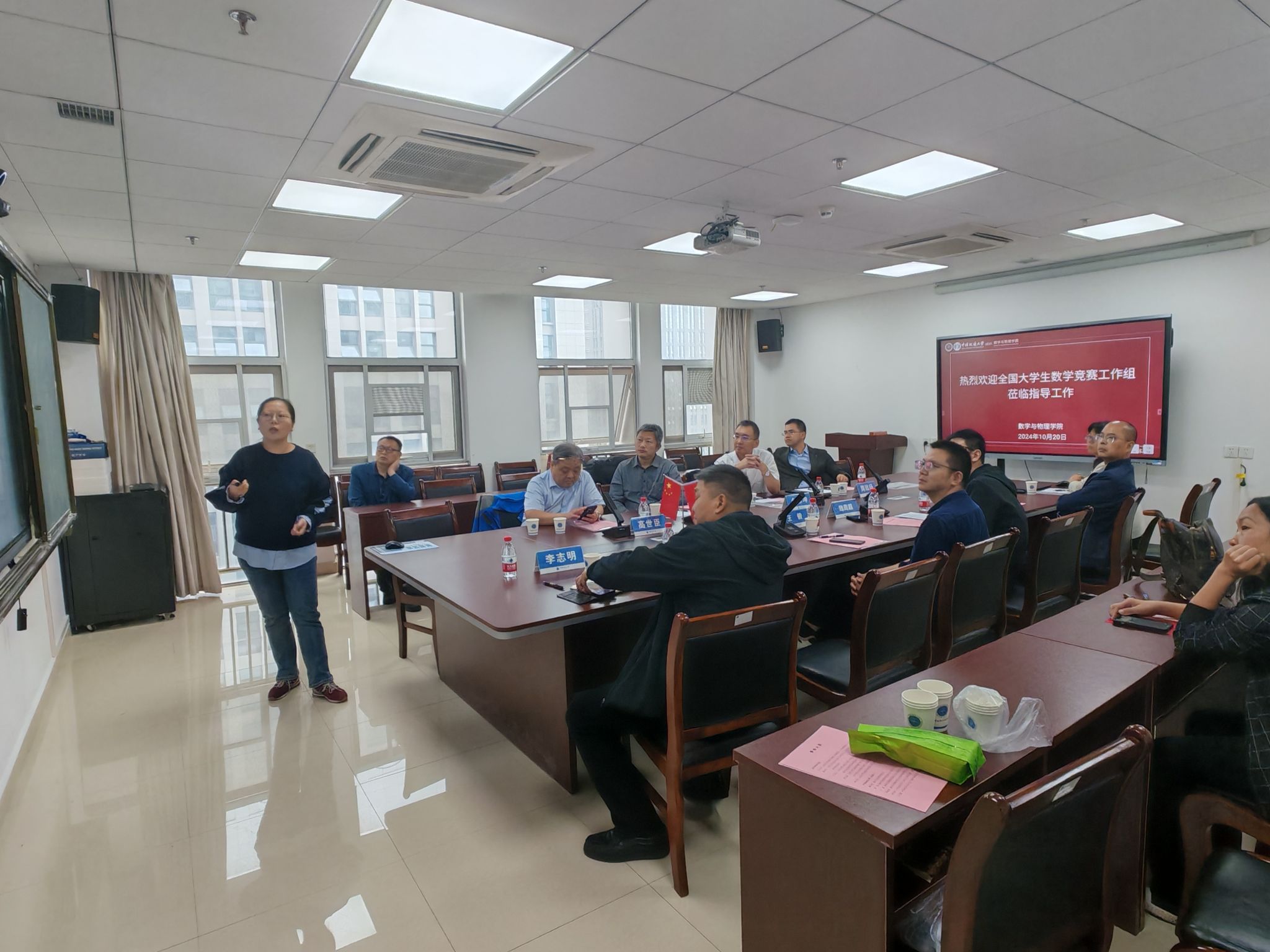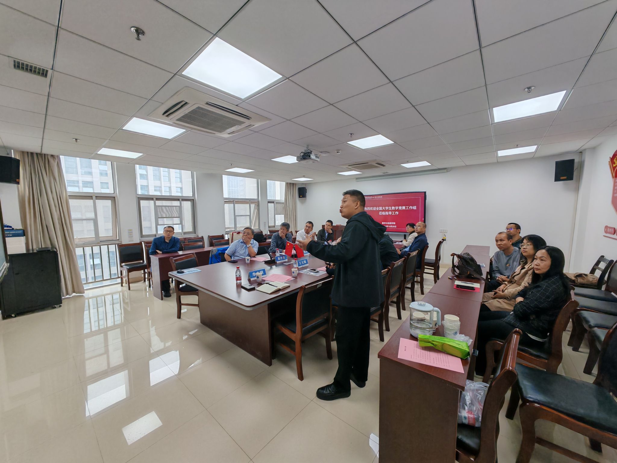 魏周超代表学院对佘志坤教授一行表示热烈欢迎,并重点围绕高水平学科竞赛成果培育,介绍了学校和学院在指导教师团队建设、校级赛事组织、赛前集训、专家指导等方面的具体工作举措。数学竞赛负责人李志明老师和王元媛老师分别从竞赛培训、校内选拔、组织参赛报名、获奖成果和政策支持等方面详细汇报了91短视频 在组织全国大学生数学竞赛中的相关工作和取得的成绩。