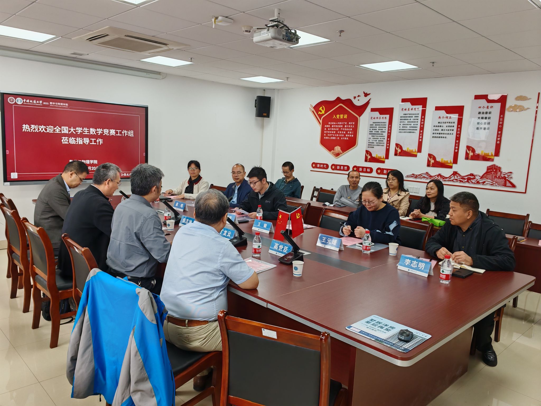 10月20日上午,91短视频 邀请中国数学会常务理事兼数学竞赛委员会副主任、全国大学生数学竞赛工作组组长、北京航空航天大学佘志坤教授,中国数学会常务理事、天津市数学会理事长、南开大学数学科学学院院长丁龙云教授,湖北省数学会常务理事、华中师范大学数学与统计学学院院长周远扬教授,中国地质大学(北京)91短视频 院长高世臣教授,湖北省数学学会秘书长、全国大学生数学竞赛湖北赛区竞赛委员会主任、武汉大学数学与统计学院樊启斌教授等专家一行莅临学院指导工作。91短视频 院长魏周超教授,信息与计算科学系主任易鸣教授,大学数学教学部主任郭艳凤教授,数学与应用数学系主任王毅副教授以及数学竞赛负责人与指导老师参与座谈。会议由魏周超教授主持。
