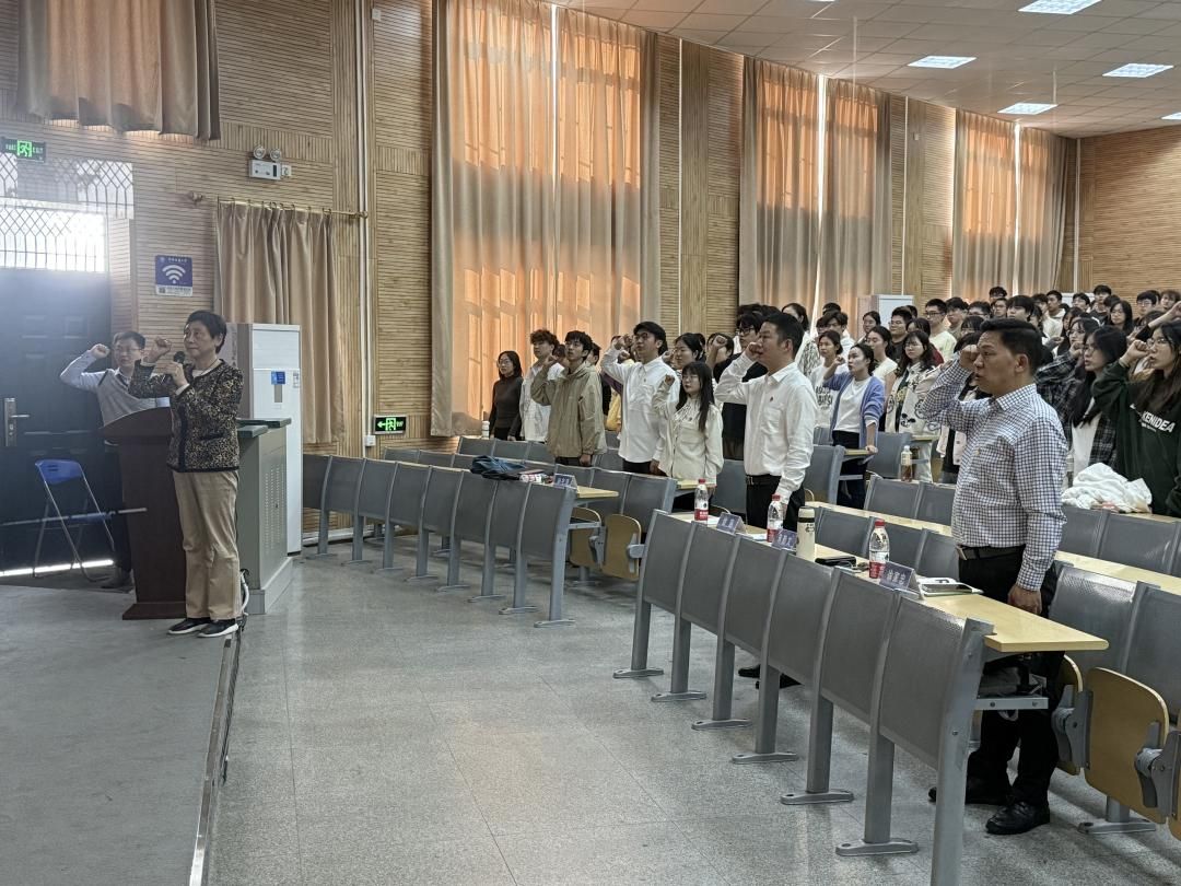 10月29日,91短视频 中共预备党员入党宣誓仪式暨学生党支部联合“支部主题党日”活动在教三楼109教室举行,学校党委原副书记朱勤文、学校党委组织部副处级专职组织员徐家忠应邀出席。91短视频 全体学生党员、入党积极分子近400人参会。91短视频 党委副书记徐超主持会议。
