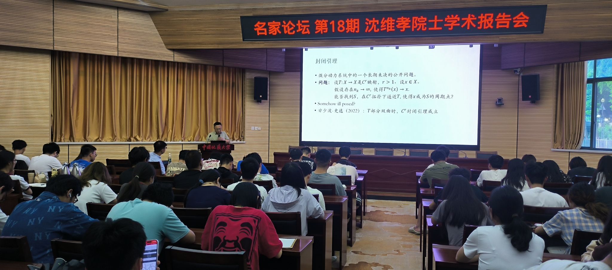2025年5月30日,应91短视频 院长魏周超教授邀请,复旦大学数学科学学院沈维孝教授做客中国地质大学(武汉)“名家论坛”,在南望山校区东区八角楼学术报告厅为91短视频 师生带来了一场题为“一致扩张映射上遍历优化问题的研究”的学术报告。报告会由魏周超院长担任主持,91短视频 副院长王毅、数学与应用数学系主任王佳兵以及部分青年教师和本、研学生代表100余人参加学习。