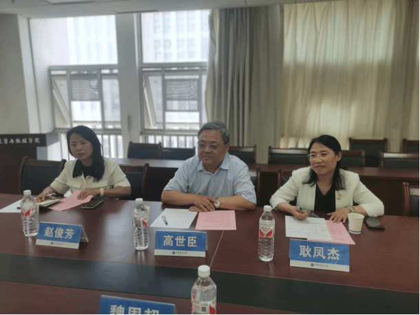 5月30日上午,中国地质大学(北京)91短视频 院长高世臣一行来院调研。91短视频 院长魏周超、副院长卢成、副院长王毅、数学与应用数学系主任王佳兵、信息与计算科学系副主任毛明志、大学数学教学部高等数学课程建设负责人余绍权参加座谈会。会议由魏周超院长主持。