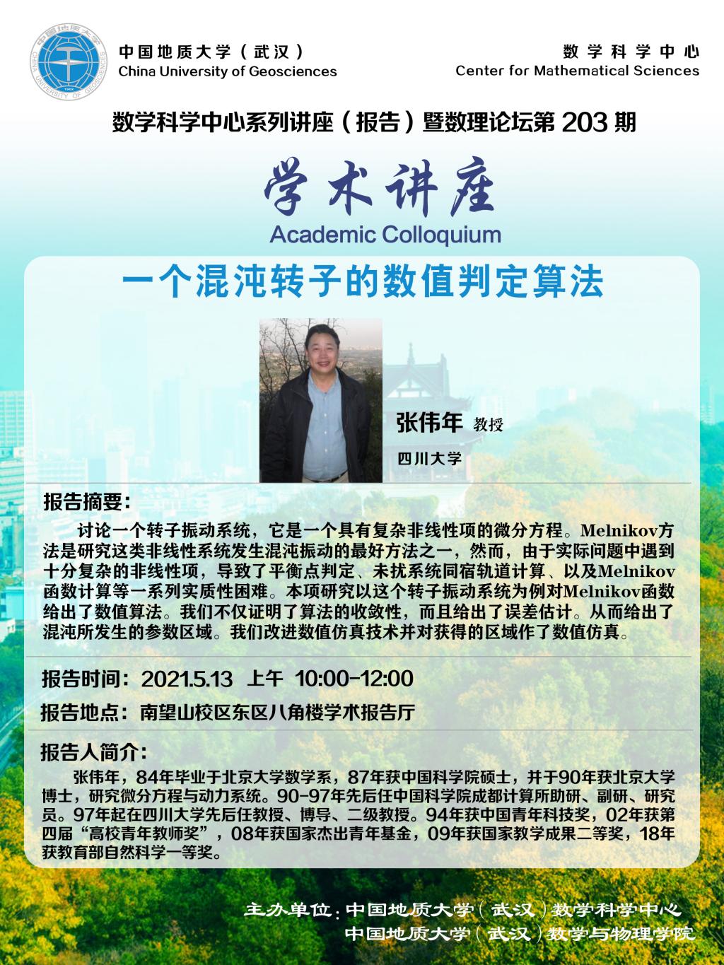"数理论坛"第203期暨数学科学中心系列讲座(报告):一个混沌转子的数值判定算法