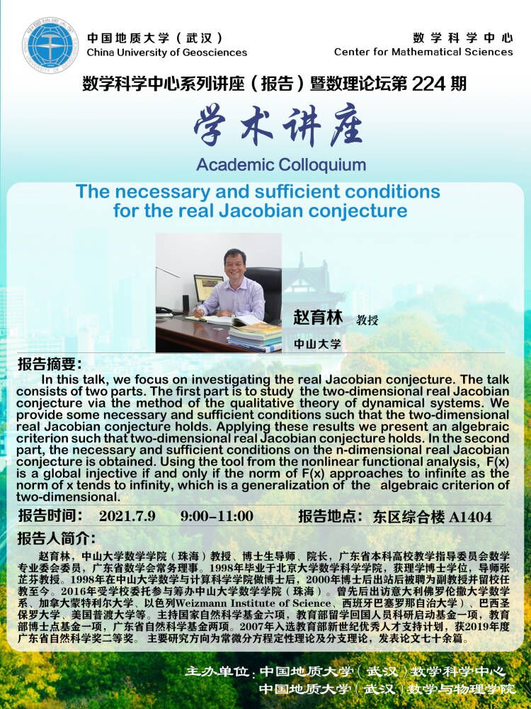 "数理论坛"第224期暨数学科学中心系列讲座(报告):The necessary and sufficient conditions for the real Jacobian conjecture
