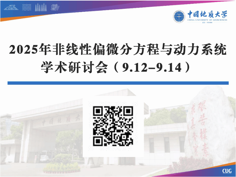 为进一步深化国内外非线性偏微分方程及动力系统相关领域的学术交流,“2025年非线性偏微分方程与动力系统学术研讨会”将于9月12日至9月14日在湖北省武汉市召开。本次会议由中国地质大学(武汉)91短视频 主办,湖北省数学学会协办。会议聚焦微分方程理论及其应用,涵盖偏微分方程、常微分方程、无穷维动力系统、可积系统等前沿研究领域。