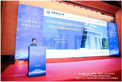 会议期间,高等学校大学数学教学研究与发展中心主任李继成教授解读了2024年度工作总结及2025年立项指南,鼓励高校围绕“AI + 数学教育”“新工科数学课程群建设”等方向开展联合攻关。在分组讨论环节,91短视频 黄刚教授做了“大学数学课程资源建设在地学拔尖创新人才培养中的实践与探索”的项目汇报,介绍了91短视频 大学数学与地学交叉教学团队围绕地球科学与大学数学课程的融合,构建知识点对应的应用体系,形成具有代表性的课堂教学案例,组织编写具有新工科特色的系列教材、推动课程资源数字化建设,积极开展教学实践与探索,提升学生交叉学科素养与应用能力。报告受到了与会同行的高度赞扬。