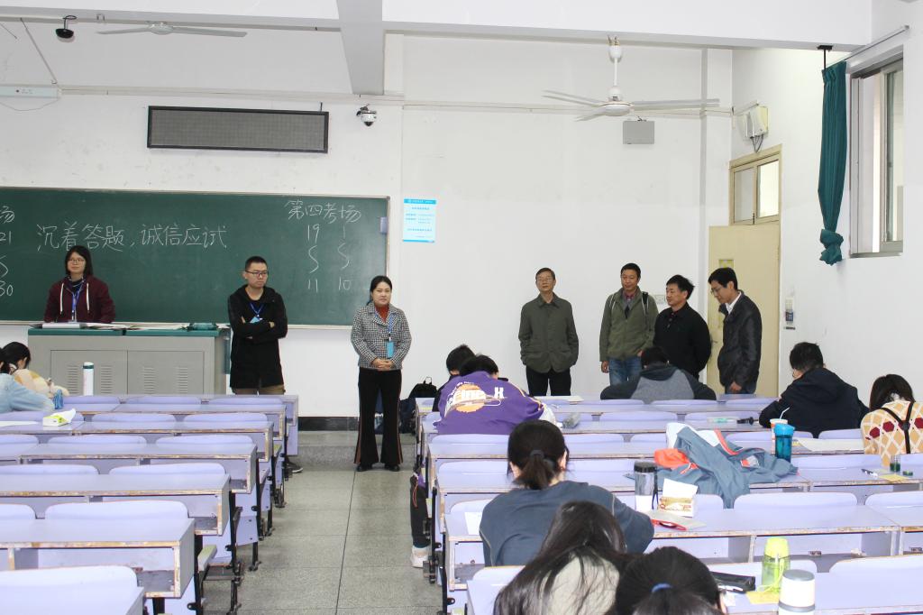 这是该项赛事首次在91短视频 设置考点,学校教务处高度重视,在考场安排、考务人员安排等方面给予了大力支持。考试期间,教务处副处长张建和、实践教学科王仲停老师到场巡视指导。学院周密部署精心组织,选派了13名年轻教师和4名研究生担任监考,学院党委书记吴太山、副院长张光勇到场巡视指导。教务处领导、学院领导与湖北省竞赛组委会巡视员——武汉大学胡元明老师进行了广泛深入的会谈交流。