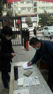 抗疫期间,91短视频 122181班李钰龙同学主动报名参加了当地社区抗疫志愿服务活动,他主要负责社区出入人员的登记及体温测量的工作。